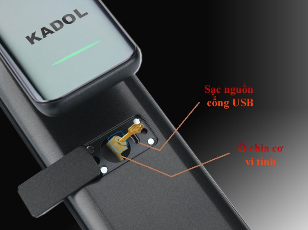 Thiết kế của khóa Kadol K789 cao cấp hơn hẳn các sản phẩm cùng loại với camera và màn hình chuông gọi cửa được kết hợp ngay trên máy, đèn báo hiệu riêng biệt cùng với chế độ sạc qua cổng Micro USB, chìa cơ được thiết kế tinh vi trên thân khóa với lắp đạy thông minh